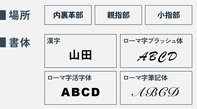 ※刺繍場所は内裏革部、親指部、小指部から選べます