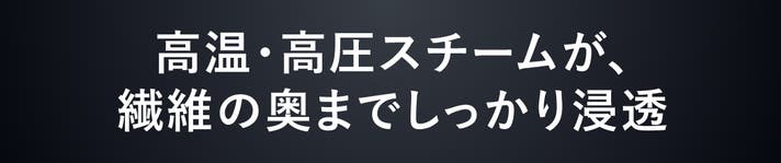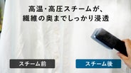 - 高温・高圧スチームが繊維の奥までしっかり浸透。2段階スチームで頑固なシワも素早く滑らかに整う。