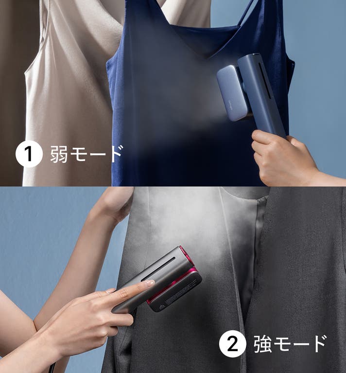 Nesugar G2 Proは、衣類の素材やシワの状態に合わせて選べる2段階スチーム機能を搭載。