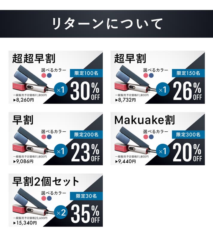 ※皆様の応援購入により量産効率が向上した場合、正規販売価格が販売予定価格より下がる可能性もございます。