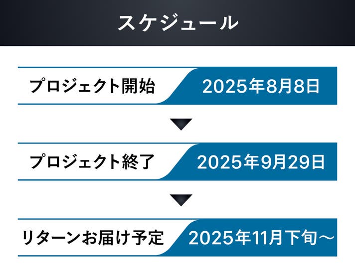 このプロジェクトはAll in型です。目標金額の達成に関わらず、プロジェクト終了日の2025年09月29日までに支払いを完了した時点で購入が成立します。