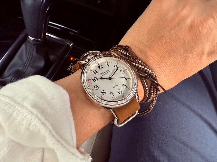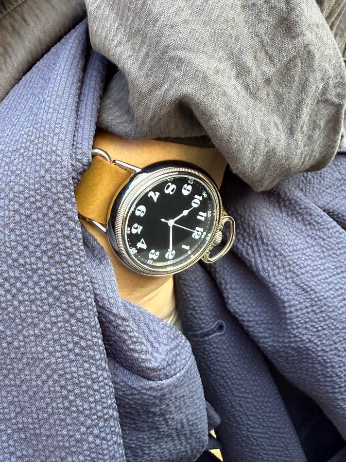 ポケットウォッチを革のカバーに包み腕時計にするものはあります。どうしても大きくてゴツくなってしまいます。カバーが懐中時計のフォルムを隠してしまい本来の懐中時計のシェイプや雰囲気が損なわれてしまいます。