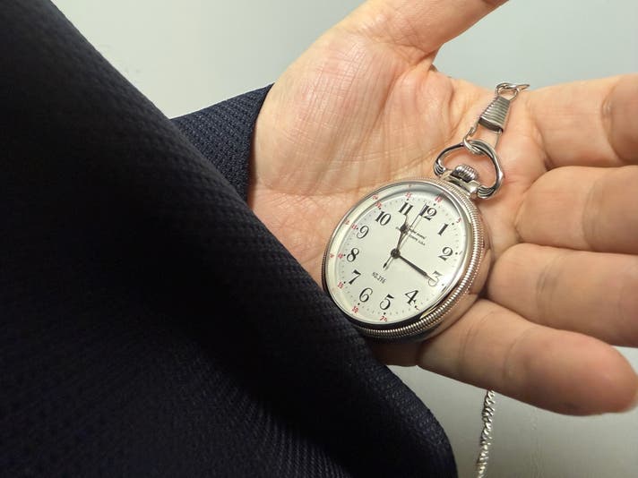 また、懐中時計としてお使いの時は、リュウズを回す事でゼンマイを巻く事がで可能です。