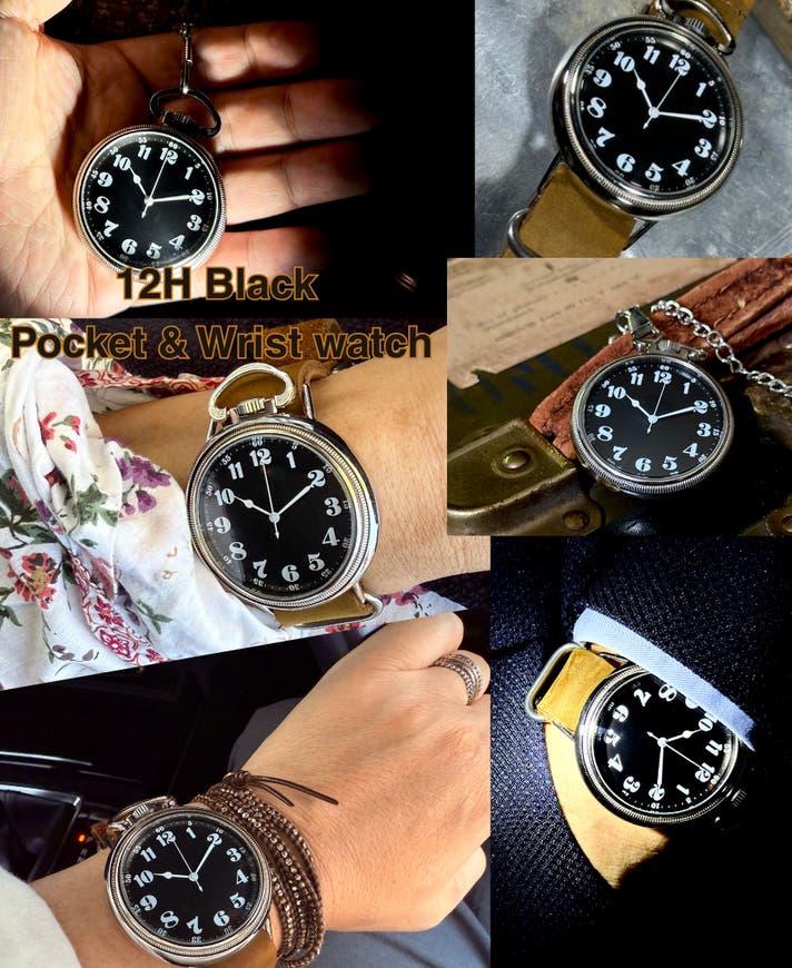 - 意匠登録済みカバーで懐中時計と腕時計の二刀流を実現