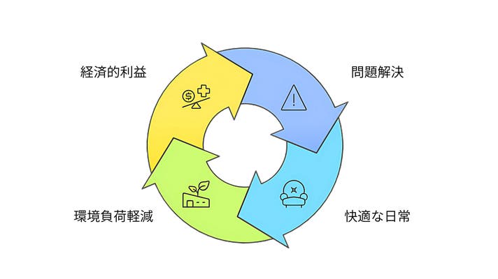 くらしを快適にする「ROSSUE」「KATATEKO」「FUMITEKO」のような製品開発を通じて、『サイフにも人にも地球にもやさしい』アイテムは、物価高や高齢社会、地球温暖化ほか様々な社会課題を解決する一歩であると自負しております。