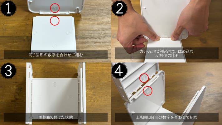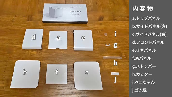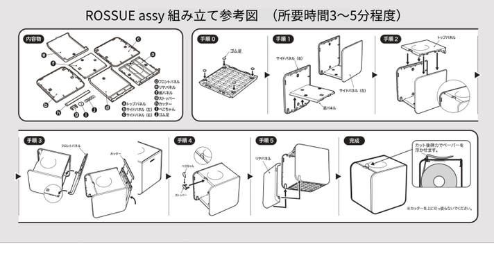 A. パッケージ内側に記載された手順を参考に、5分程度で簡単に組み立てられます。※さらにわかりやすくするため現在パッケージを再デザイン中です。