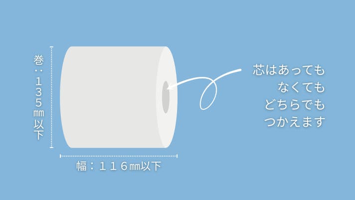 A.ご利用いただけます。(下図ROSSUEで使えるロールペーパーのサイズ)