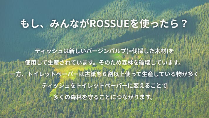 たった一人の選択が、何万人、何億人もの力となるとき、世界は大きく変わります。ROSSUEは、ただの便利なペーパーホルダーではありません。ROSSUEは、みなさんのくらしを賢くすると同時に、地球の未来を守るための、確かな一歩になります。