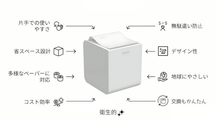 片手で使え、欲しい分だけ取り出せ、コスパや環境にもいい。ROSSUEはトイレットペーパーをティッシュの上位互換品に変えてくれる魔法のアイテムです。