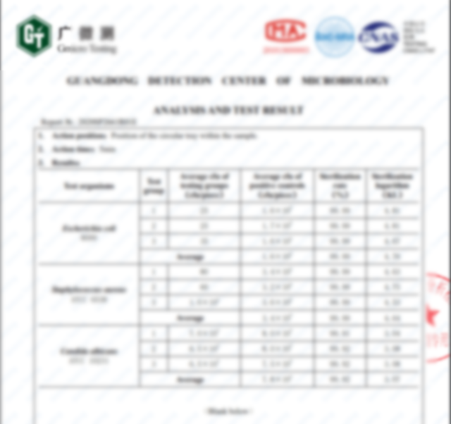 紫外線除菌ボックスに使われているUV-C LEDライトの効果は、第三者機関によって実証検査済みです。