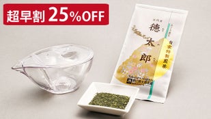 一般発売予定価格3,520円+煎茶徳太郎100g1,620円+送料770円=5,910円(税込) の25%OFF→4,433円(税込)