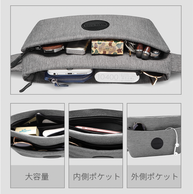 - 内側ジッパー付きポケット、外側ポケットなど、小さなボディながらも大容量でスムーズな出し入れ!