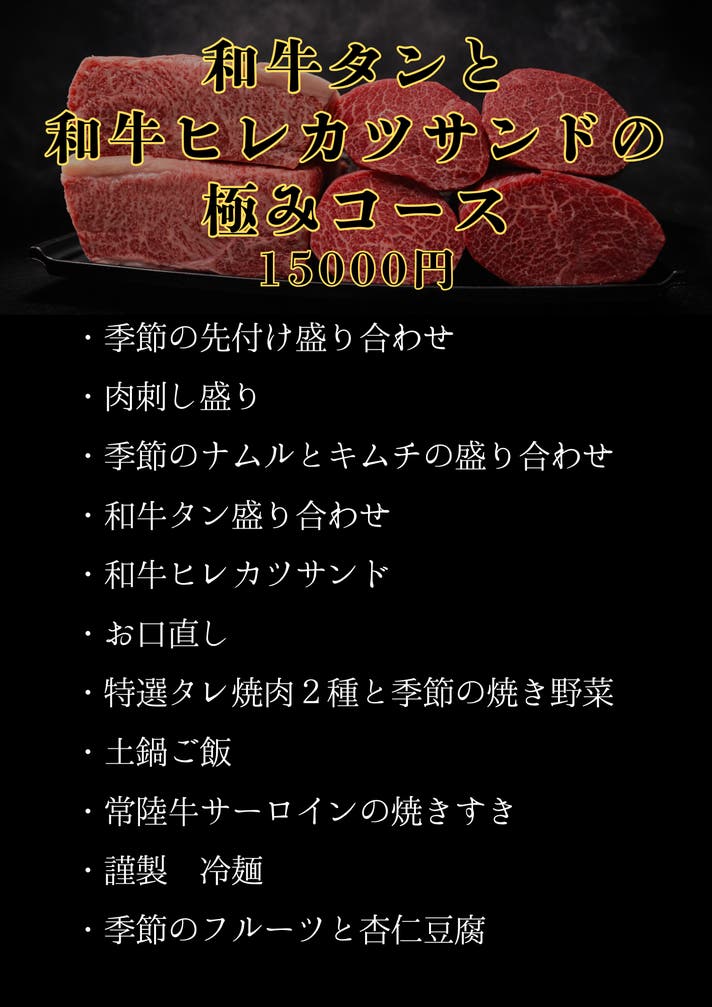 【早割】和牛タンとヒレカツサンドの極み15000円コース2名様分