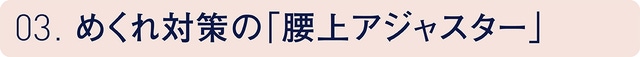 背面の腰部分にアジャスターを採用しました。アジャスターをしめて、パジャマを心地よく体にフィットさせることで、就寝中にウェアがめくれあがることを防ぎます。