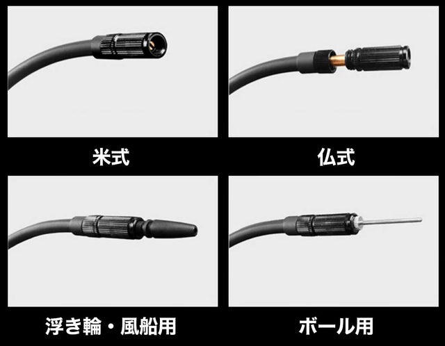 ノズルは、米式、仏式、浮き輪・風船用、ボール用に対応
