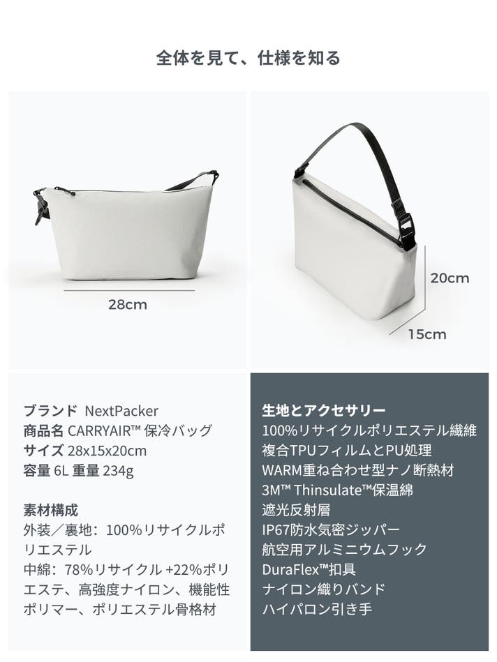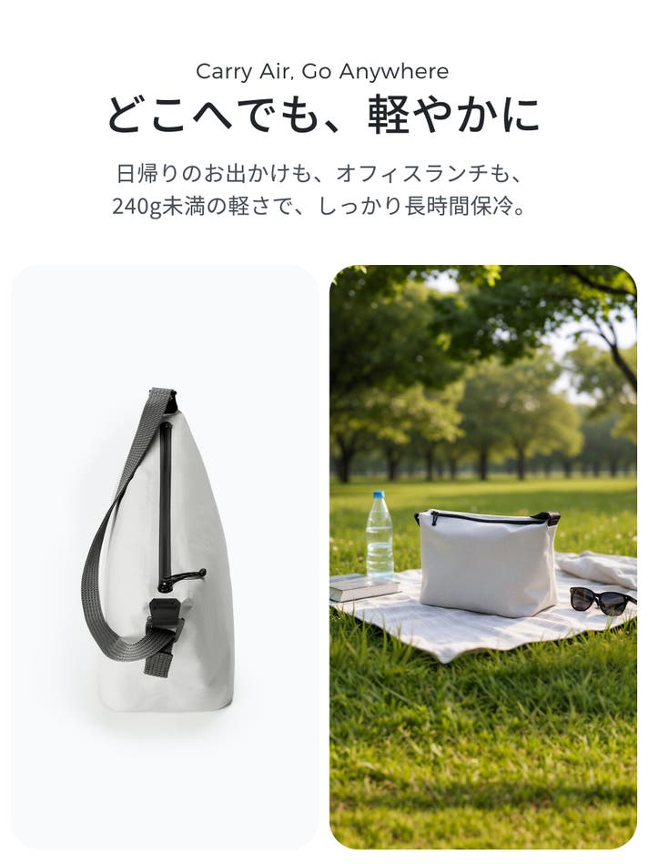 携帯性と快適性を追求した、新しい保冷バッグのスタンダードを、あなたの毎⽇に。
