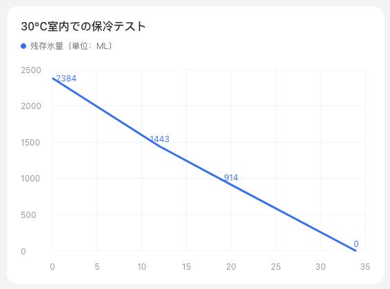 保冷効果に影響する要素は多岐にわたるため、掲載のテスト結果はあくまで参考値であり、すべての使用環境での保冷持続時間を保証するものではありません。