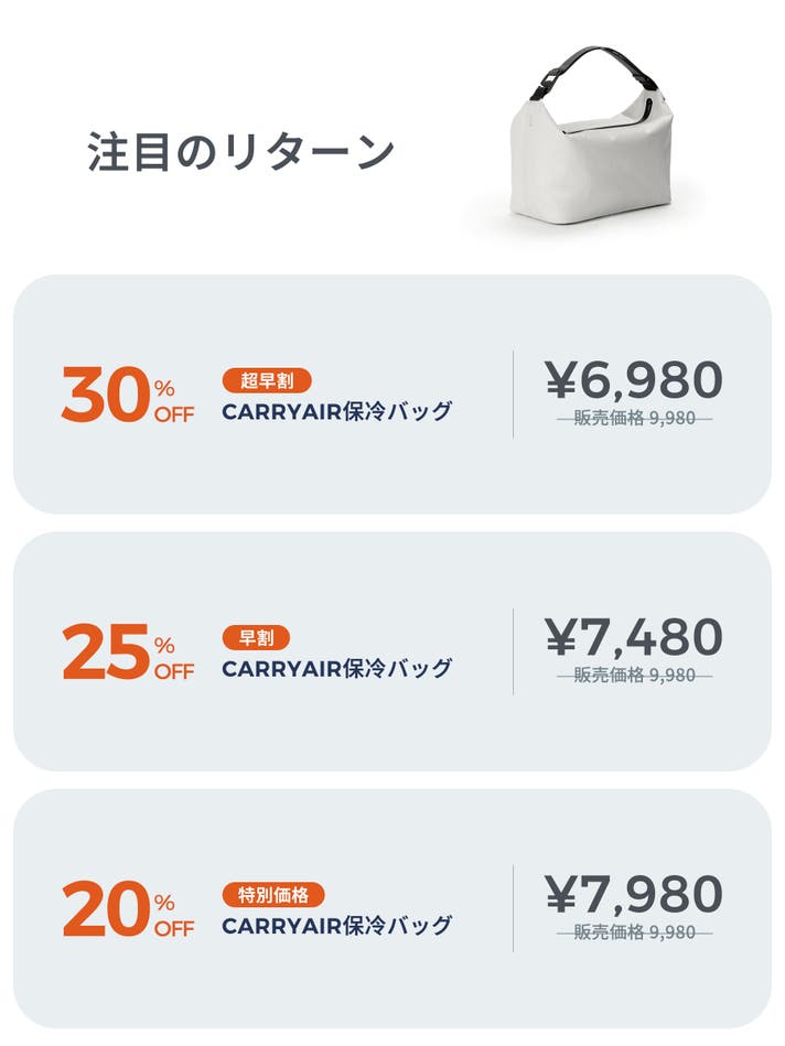 【早割25%OFF】CARRYAIR 保冷バッグ x1