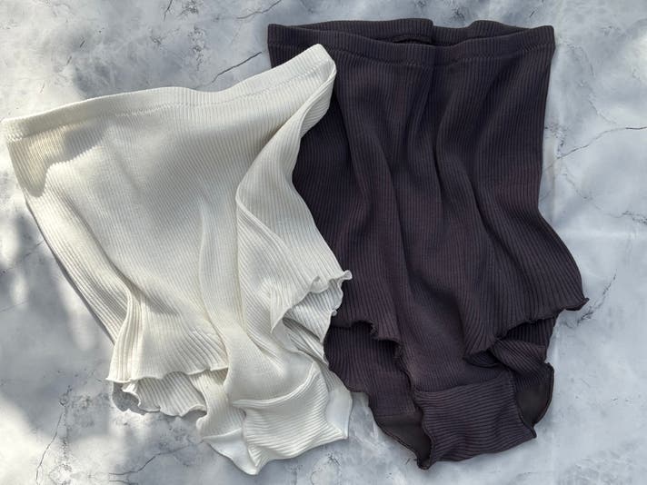 ■リブセットはオフホワイト、シルクサテンブラはオートミールの3点フルセット
