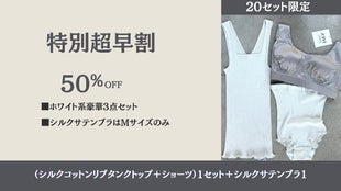 【特別割】シルクコットンタンクトップ上下+定番シルクブラの3点フルセット WH