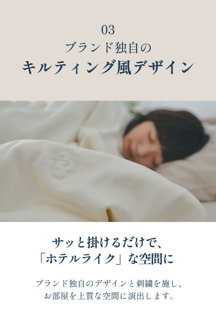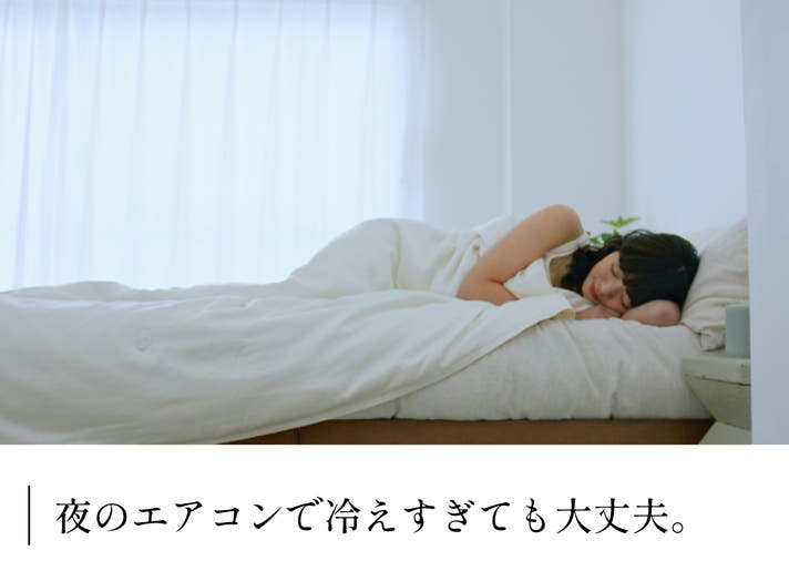 ふんわりと軽く身体に沿い、冷房の風からやさしく守る、新しい夏の寝心地です。