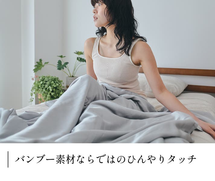 ■表地のバンブー素材を使用し肌に触れた時に「ひんやり」とした冷たさを感じられます。