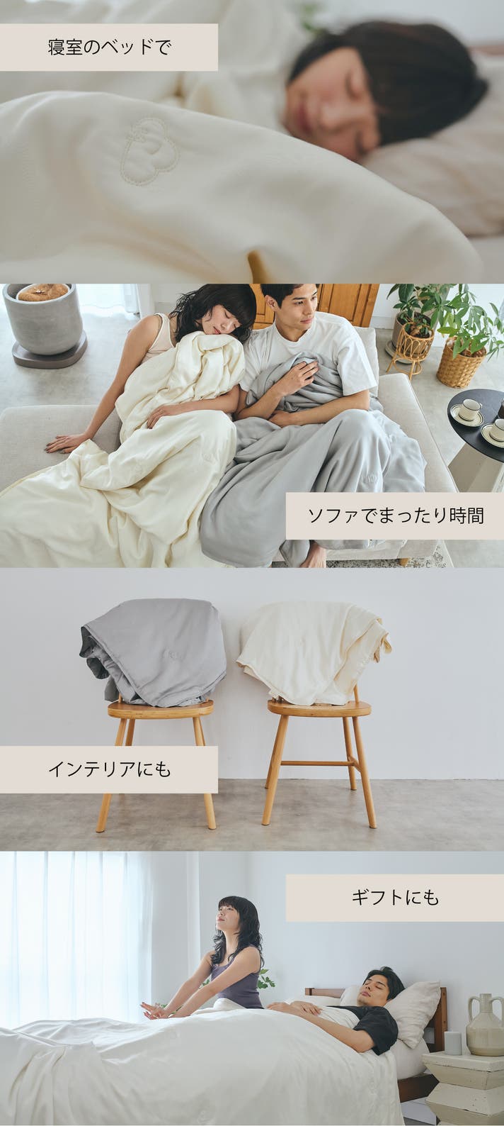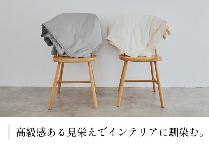 ■寝具だけでなく、ソファなどで過ごすときでも。部屋を上質な空間に格上げしてくれます。ずっと纏っていたくなります。