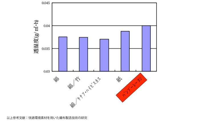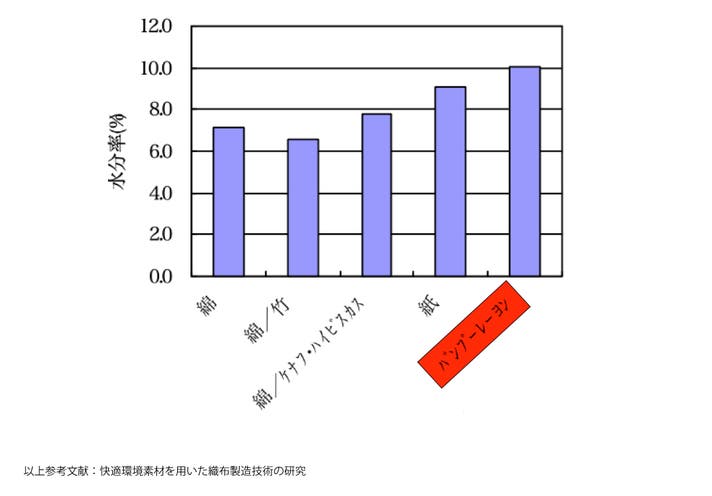 ■バンブーレーヨンは綿に比べて透湿力が高く、ジメジメした夏場でもさらりと過ごせる素材です。