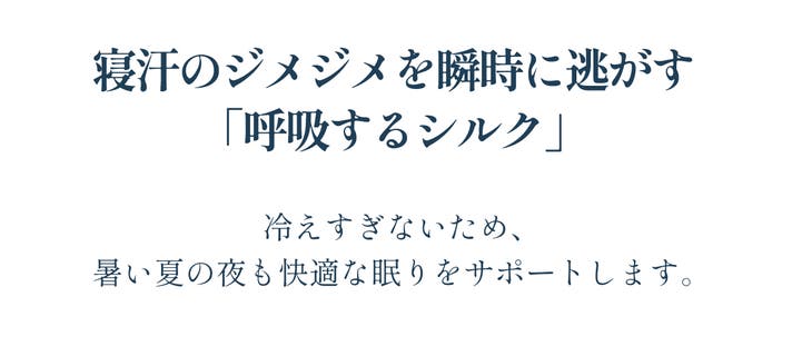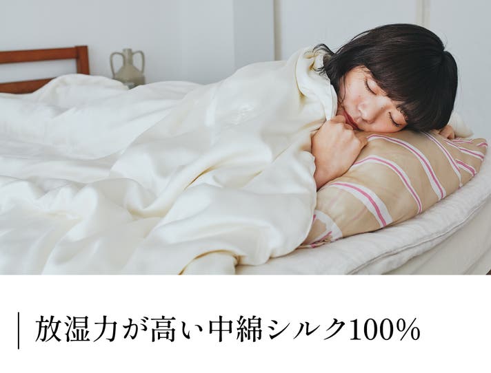 シルクの持つ保温性と放湿性が、蒸れにくく、冷えすぎない、ふわりと快適な夏の安眠へ導きます。