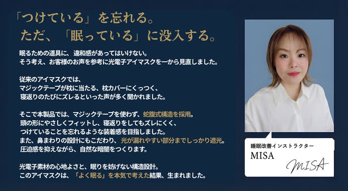 ほんのわずかな光、耳への違和感、ズレを気にする不快感。 これら一つひとつは小さなことでも、積み重なることで「視界の完全なシャットダウン」を妨げ、集中と休息の切り替えを曖昧にさせます。