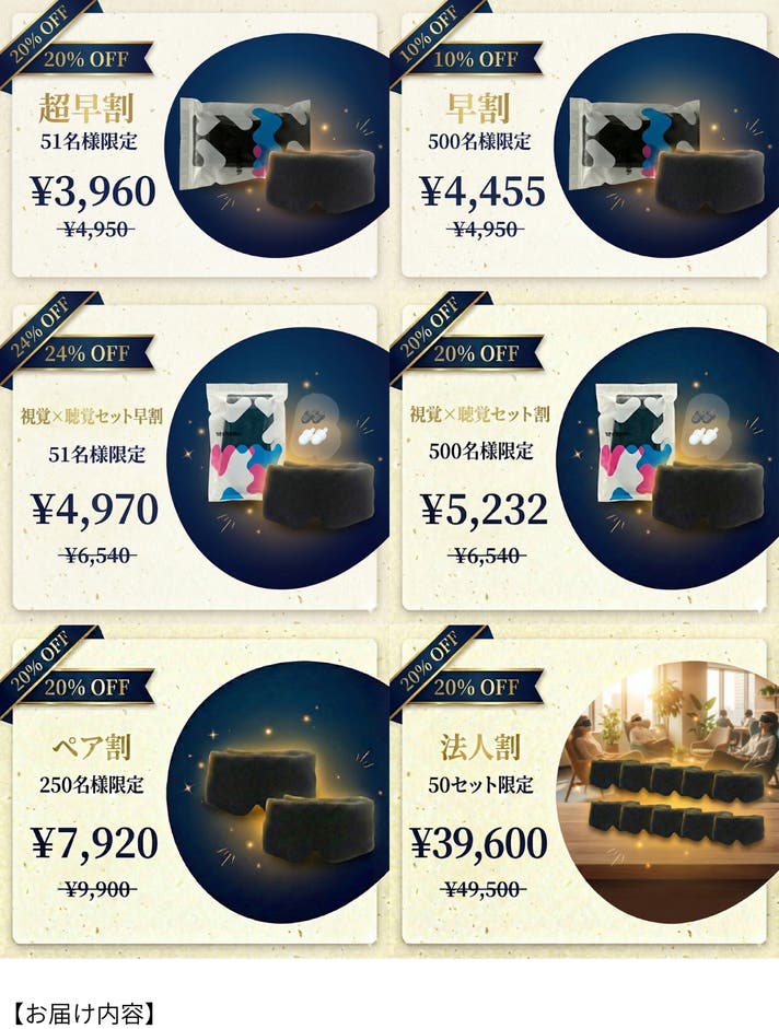 A. 視覚だけでなく「聴覚」からのノイズも遮断することで、休息の没入感を得るためです。気分を「思考モード」から「休息モード」へ切り替えるための、本製品における「最終回答」としてのセット内容となっております。
