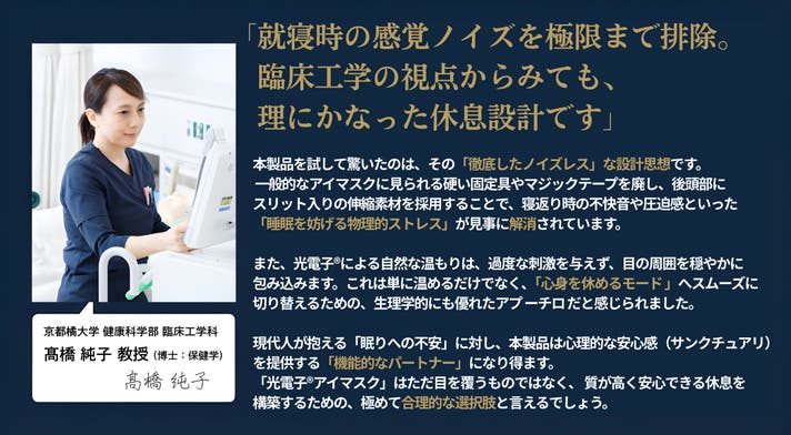 - 光電子の力と圧倒的な静寂。目を閉じた瞬間に始まる、上質な休息。明日のためのパフォーマンス投資。