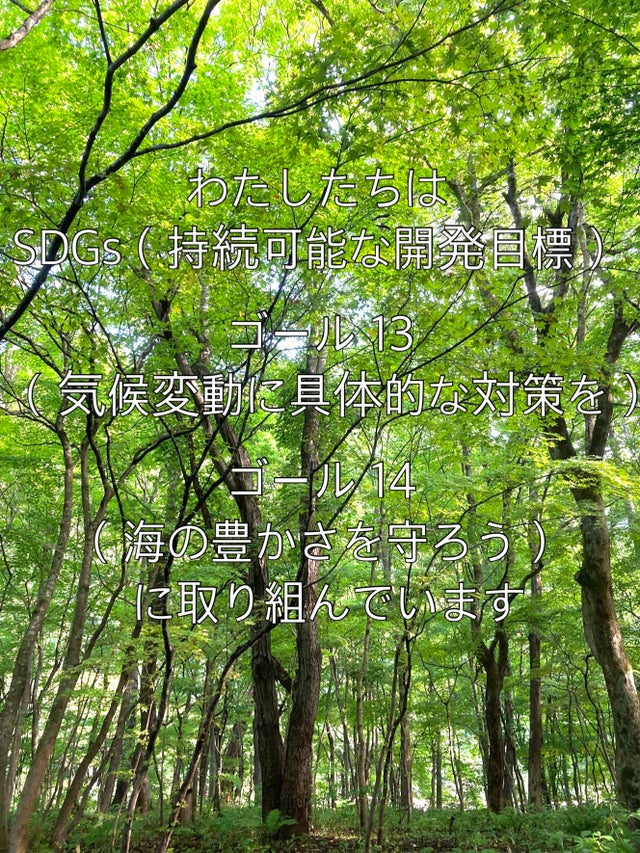 私たちはSDGs(持続可能な開発目標)の、ゴール⑬(気候変動に具体的な対策を)と、ゴール⑭(海の豊かさを守ろう)に取り組んでいます。