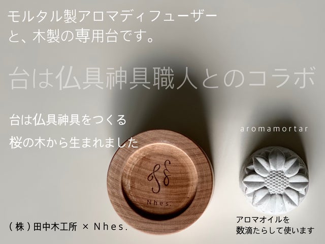 モルタル製アロマディフューザーにアロマオイルを数滴たらしてお楽しみください。モルタルが粉っぽくなりましたら aromamortar 全体を少し水で濡らしてください。