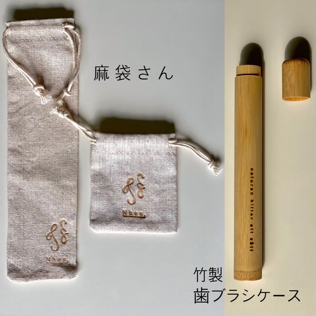 ・天然素材の歯ブラシ1本と竹製専用歯ブラシケース1個のセット(専用麻袋付き)
