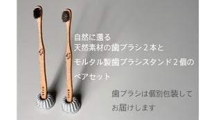 ・天然素材の歯ブラシ2本とモルタル製歯ブラシ立て2個のセット