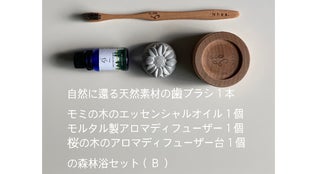 ・天然素材の歯ブラシ1本とオリジナル モミの木の精油1個とモルタルと木のディフューザー各1個のセット