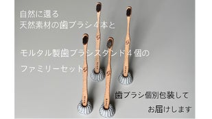 ・天然素材の歯ブラシ4本とモルタル製歯ブラシ立て4個のセット