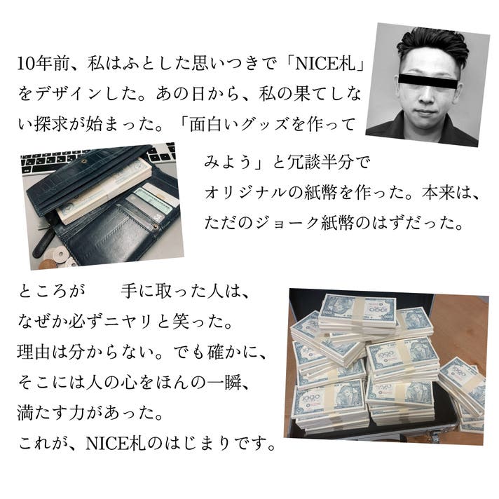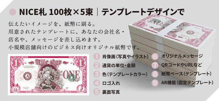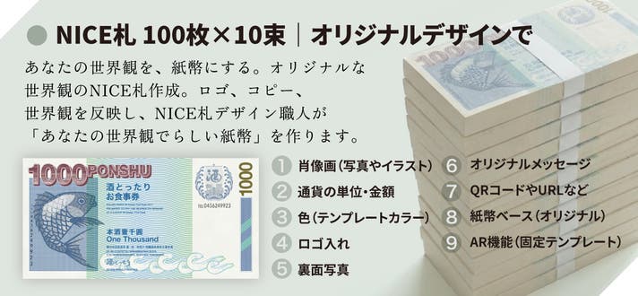あなたの世界観を、紙幣にする。オリジナルな世界観のNICE札作成。ロゴ、コピー、世界観を反映し「あなたの世界観でらしい紙幣」を作ります。