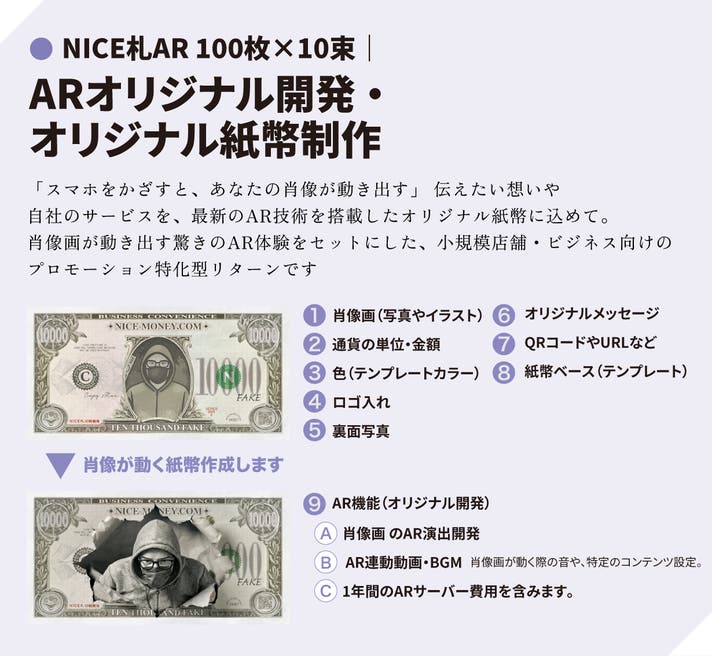 【NICE札AR】100枚×10束|ARオリジナル開発・オリジナル紙幣制作