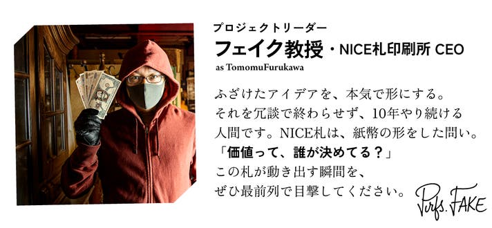 ※NICE札はおもちゃ紙幣であり、実際の決済には使用できません。券面には『FAKE』の文字が一目で判別できるサイズで記載されています。