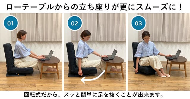 座椅子を使用すると脚やお尻の負担も軽くなります。また身体が安定し、正しい姿勢のサポートになります。なんといっても座り心地が、グッと良くなります。