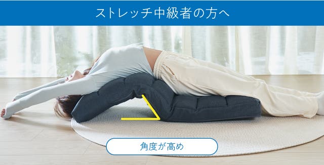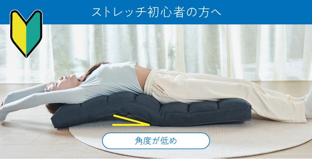 状態反らしは心地よく、身体起こしは楽に!ストレッチ運動をサポート。角度を変えて強度を調整できます。はじめは角度低めからスタートしてください。スプリングは反発力があり、身体を起こしの際もバネの反発力がサポートします。