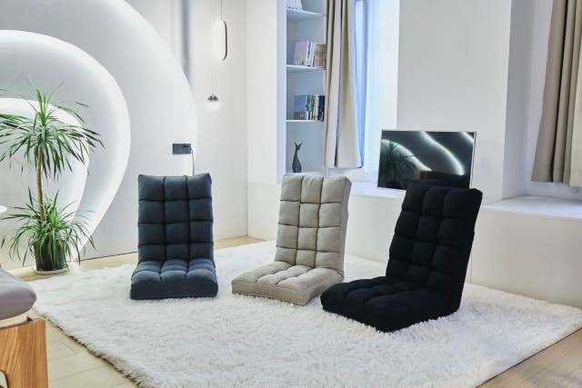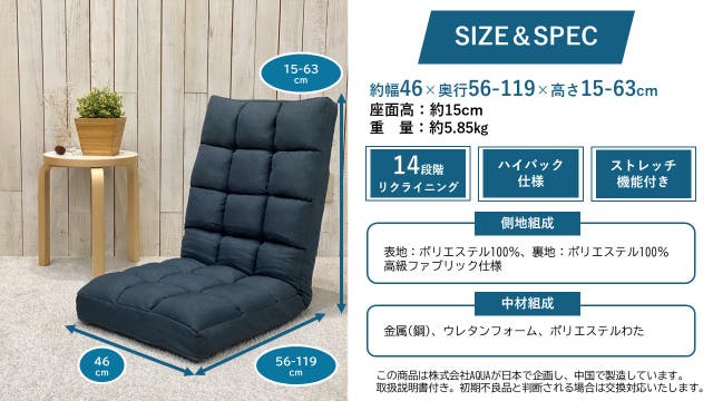 省スペース設計。インテリアに馴染む色とシンプルなデザインがポイント!高級家具用生地を採用。モダンでおしゃれな座椅子ができました。