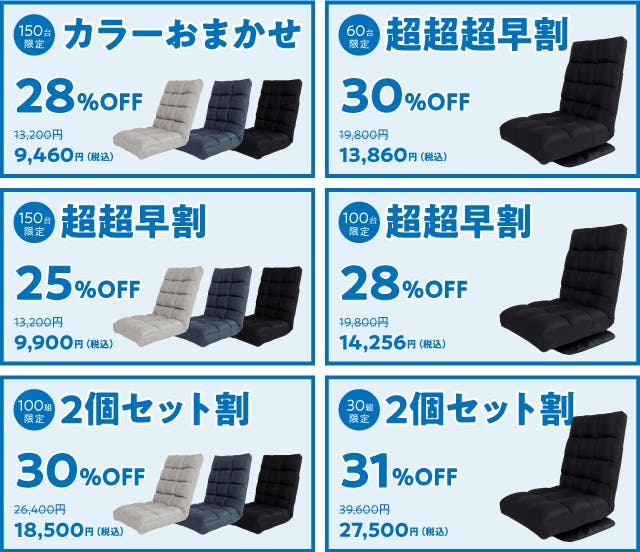 【超超早割 25%OFF】ストレッチ機能付き座椅子 回転なし 150個
