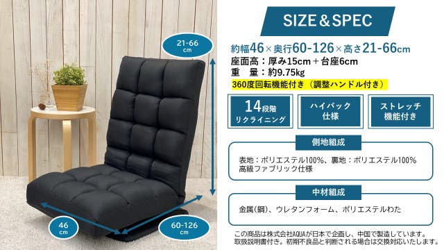 - 「180度ストレッチ」「14段階リクライニング」欲しいが詰まった高級感のあるファブリック座椅子