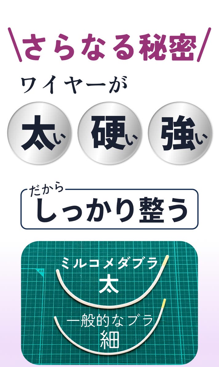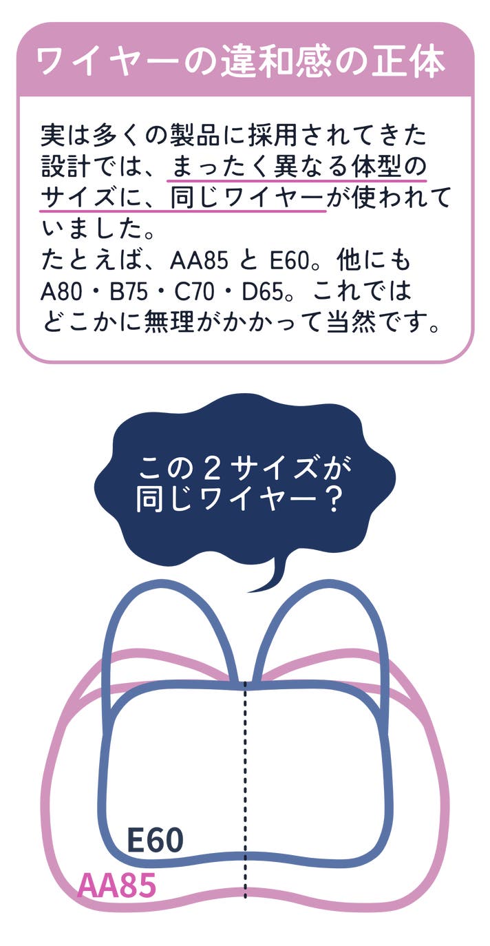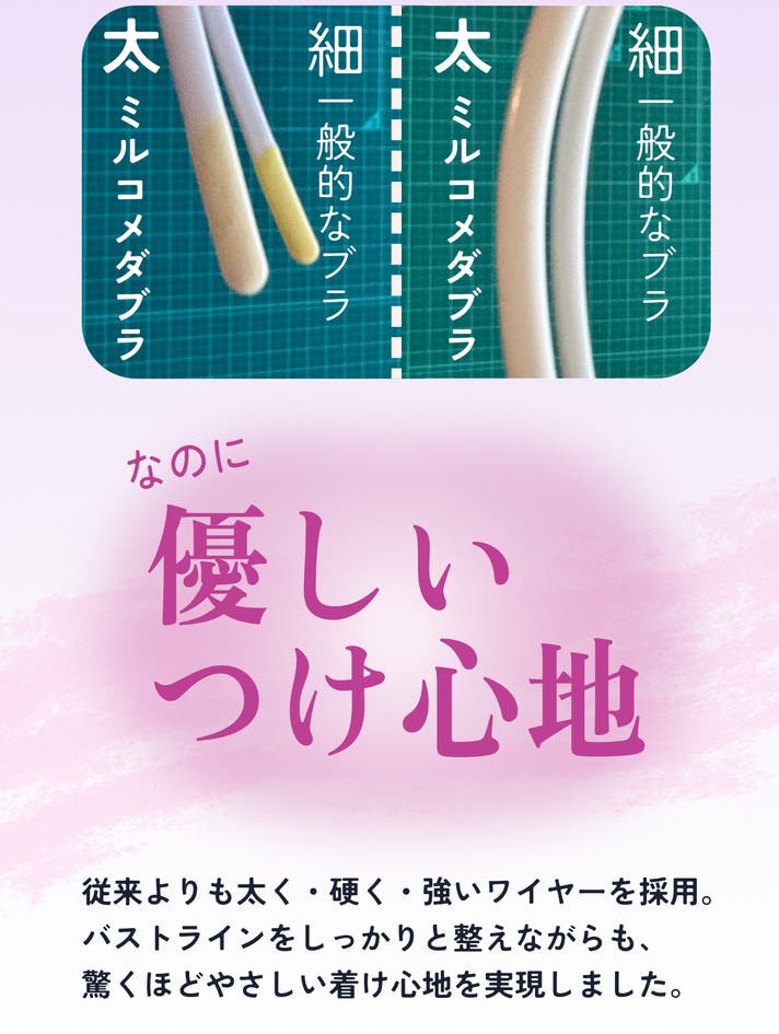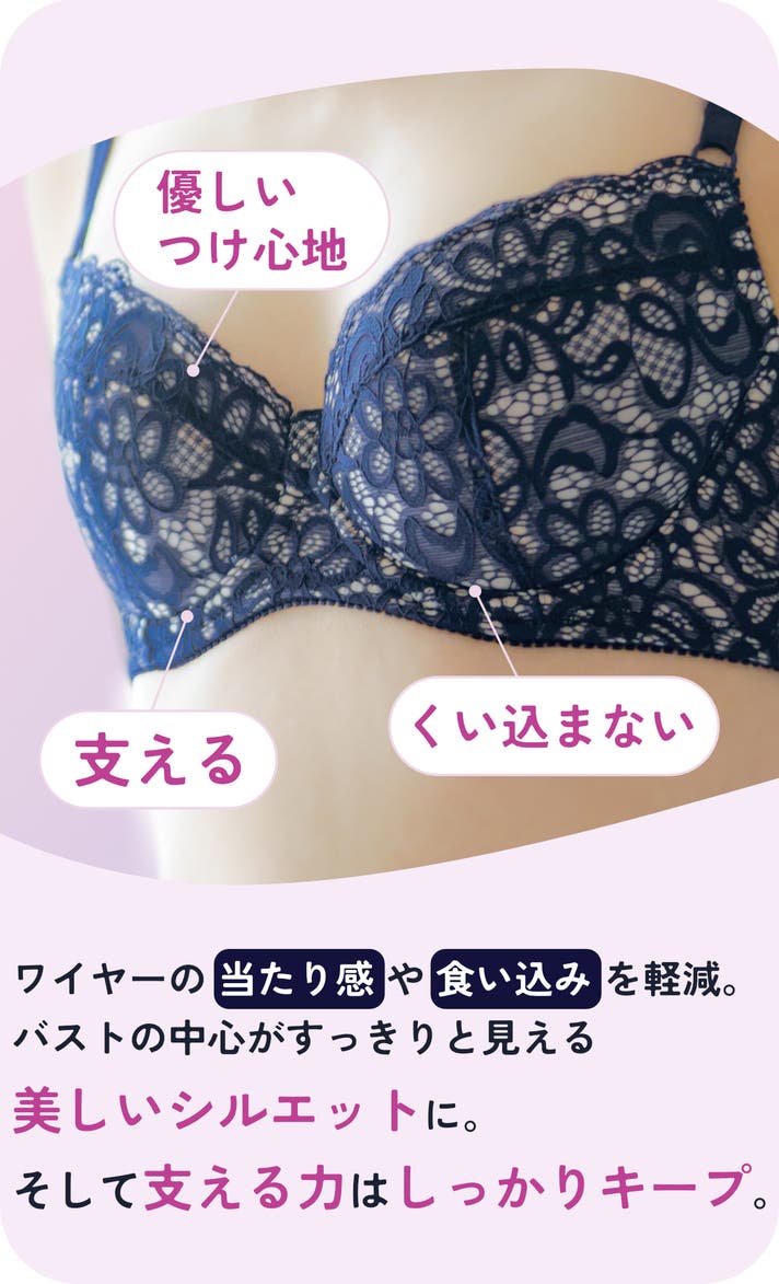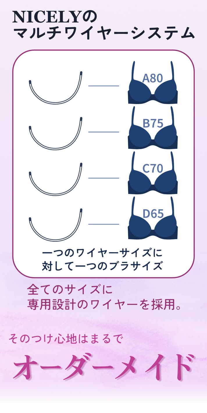 - サイズ毎に異なるワイヤーを採用。まるでオーダーメイドのような着け心地を実現。