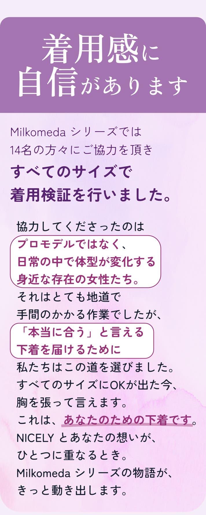 ※「下着研究所」はNICELYの開発思想を表現する架空の研究所です、実在はしません。