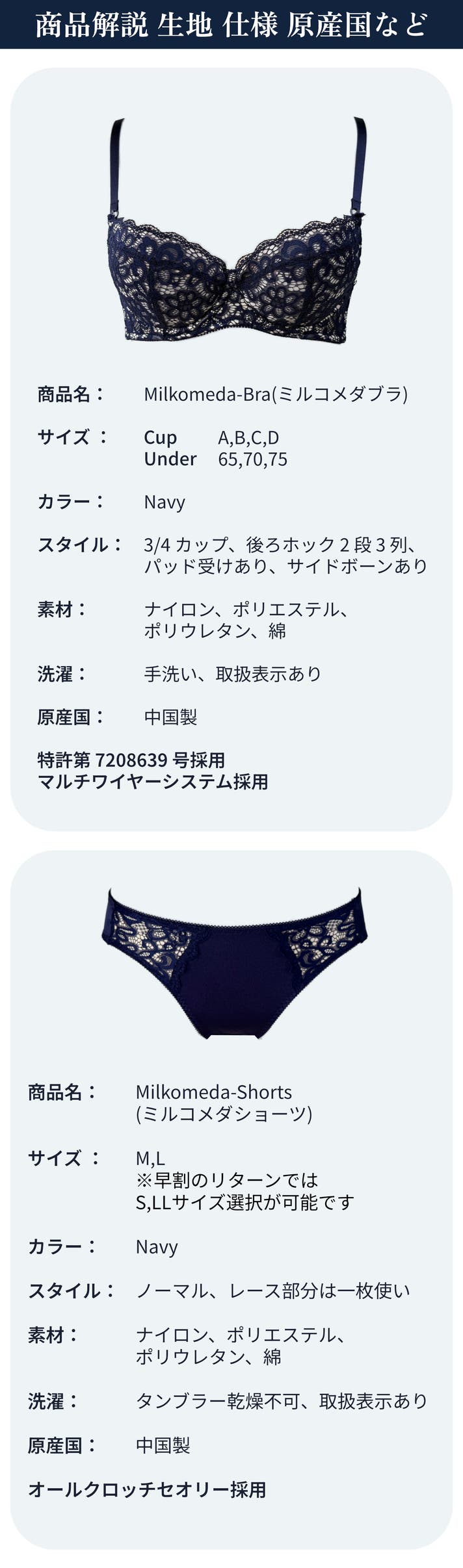 Milkomedaシリーズは繊細な素材と構造で作られており、金属製のワイヤーを使用しているため、手洗いを推奨しています。