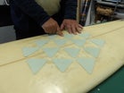 素材: 蓄光材をもちいた凹凸のある特殊なシート。夜のマリンスポーツも視認性が向上します。